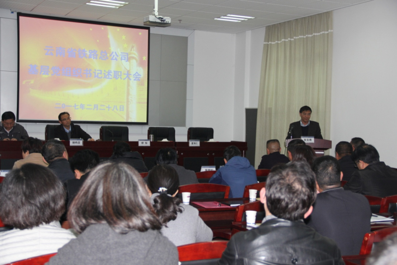 2017年2月28日下午,云南省铁路总公司党委召开了2016年度基层党组织书记抓基层党建工作述职评议考核会,云南省铁路总公司党委书记、副董事长谢昀言,党委副书记、董事长穆标出席会议。